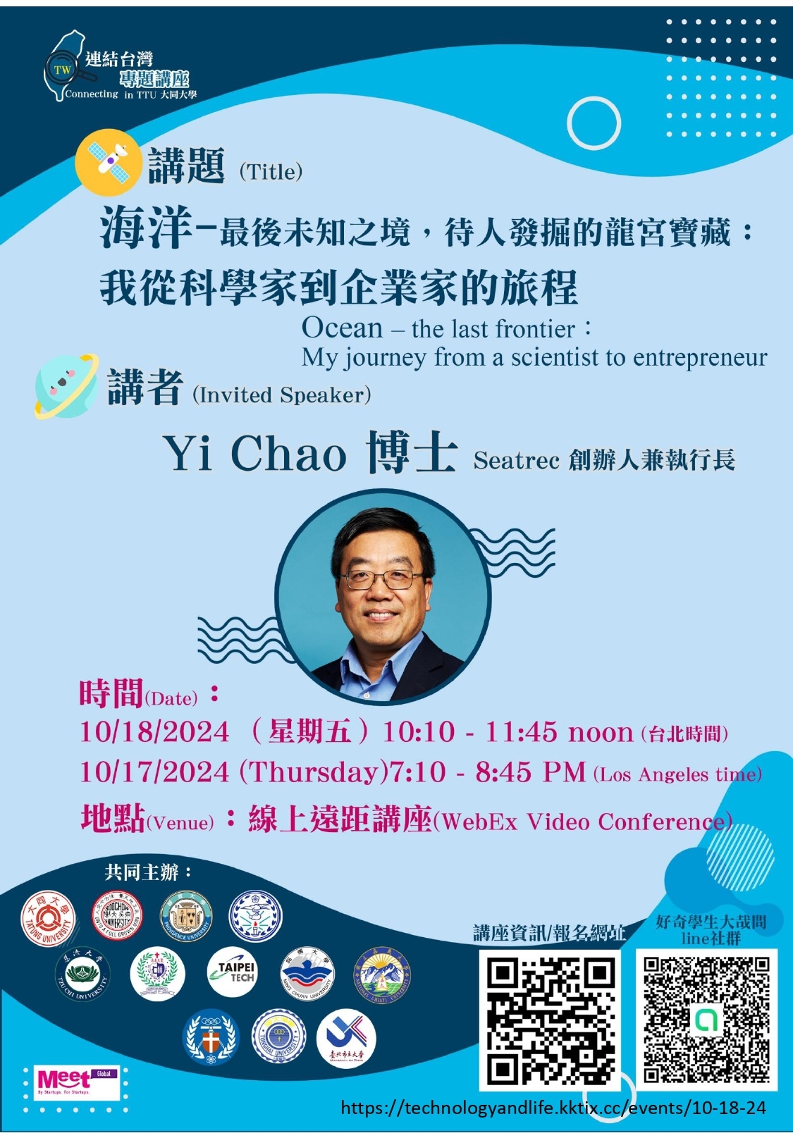 【通識教育中心】轉知:連接台灣專題講座 Yi Chao 博士 — 海洋 —最後未知之境,待人發掘的龍宮寶藏:我從科學家到企業家的旅程