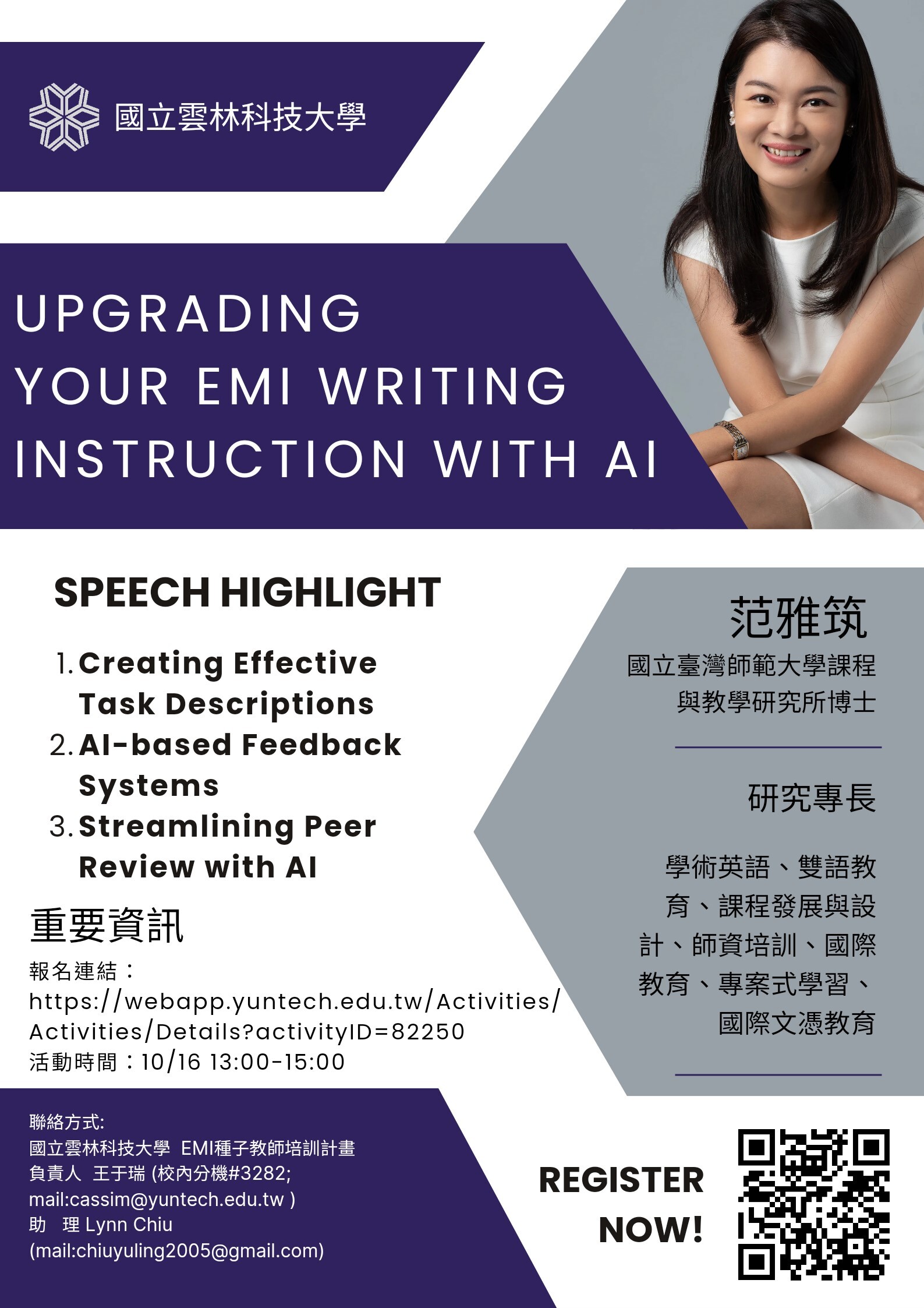 (二)第二場:「Upgrading Your EMI Writing Instruction with AI」。