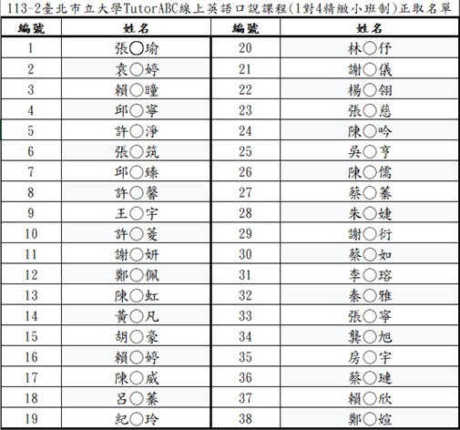 【通識教育中心】公告:TutorABC線上英語口說課程正取名單