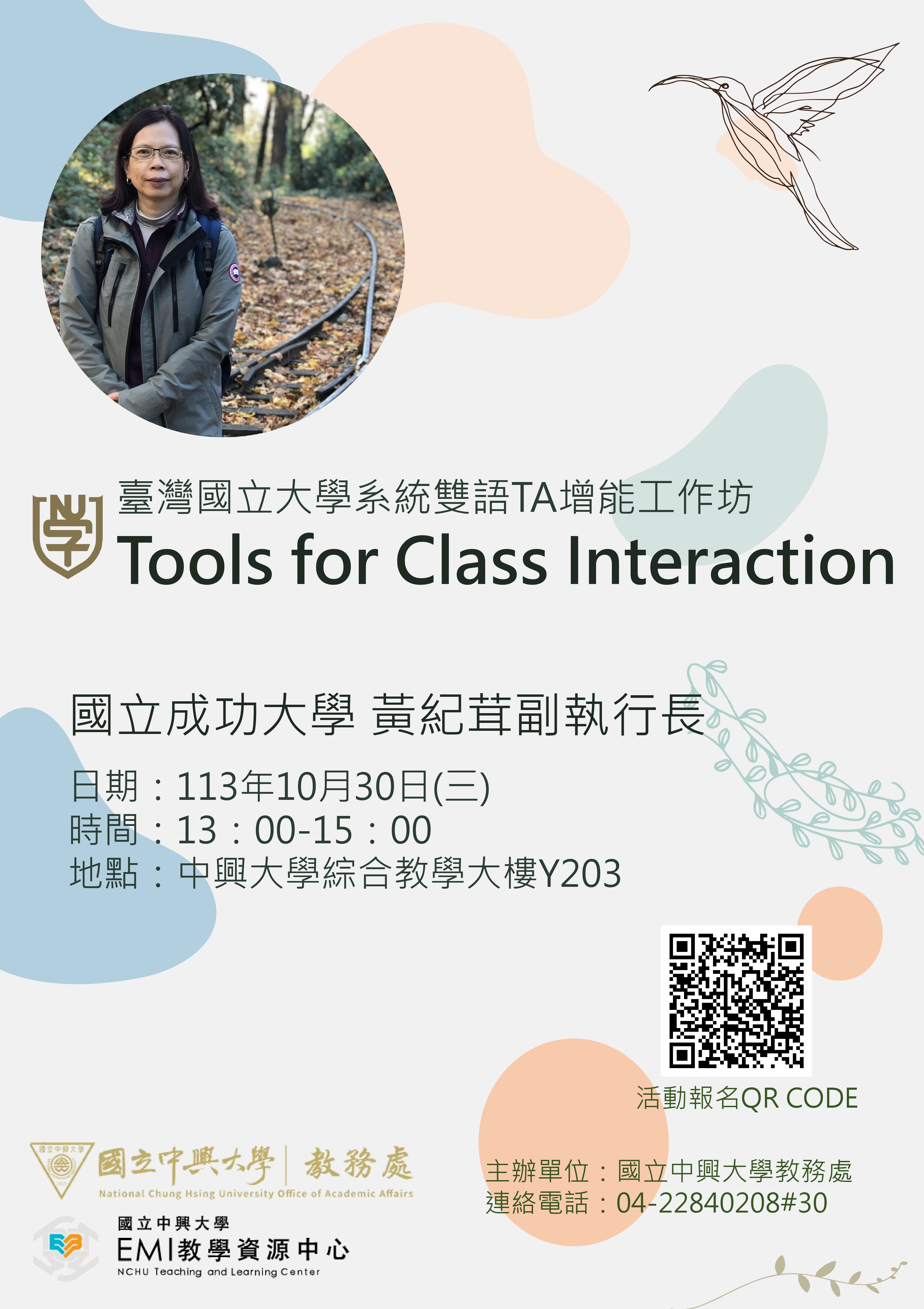 【通識教育中心】轉知:國立中興大學EMI教學資源中心與臺灣國立大學系統聯合辦理 之「雙語TA增能工作坊-Tools for Class Interaction」