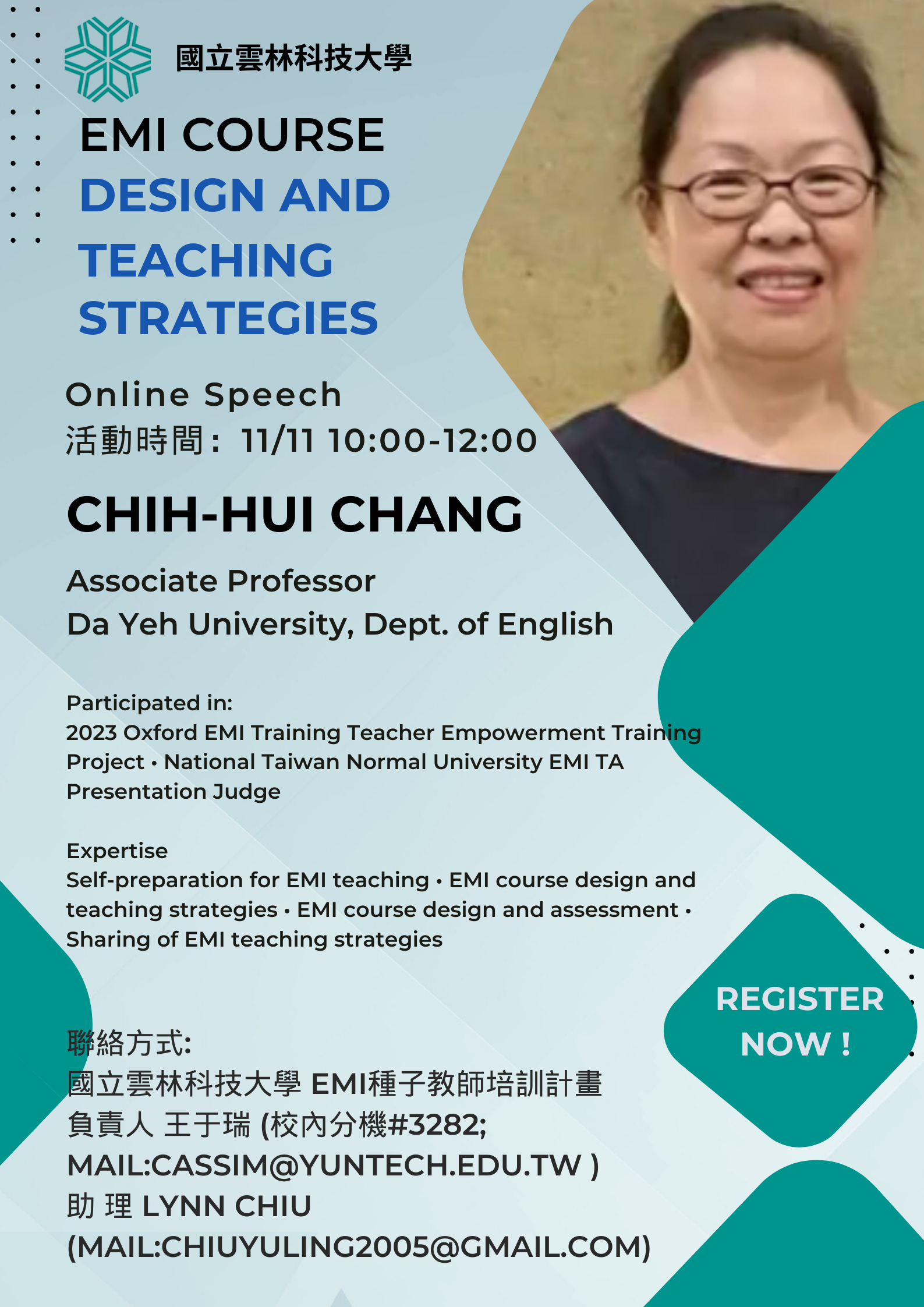 三、主題:「EMI Course Design and Teaching Strategies」。