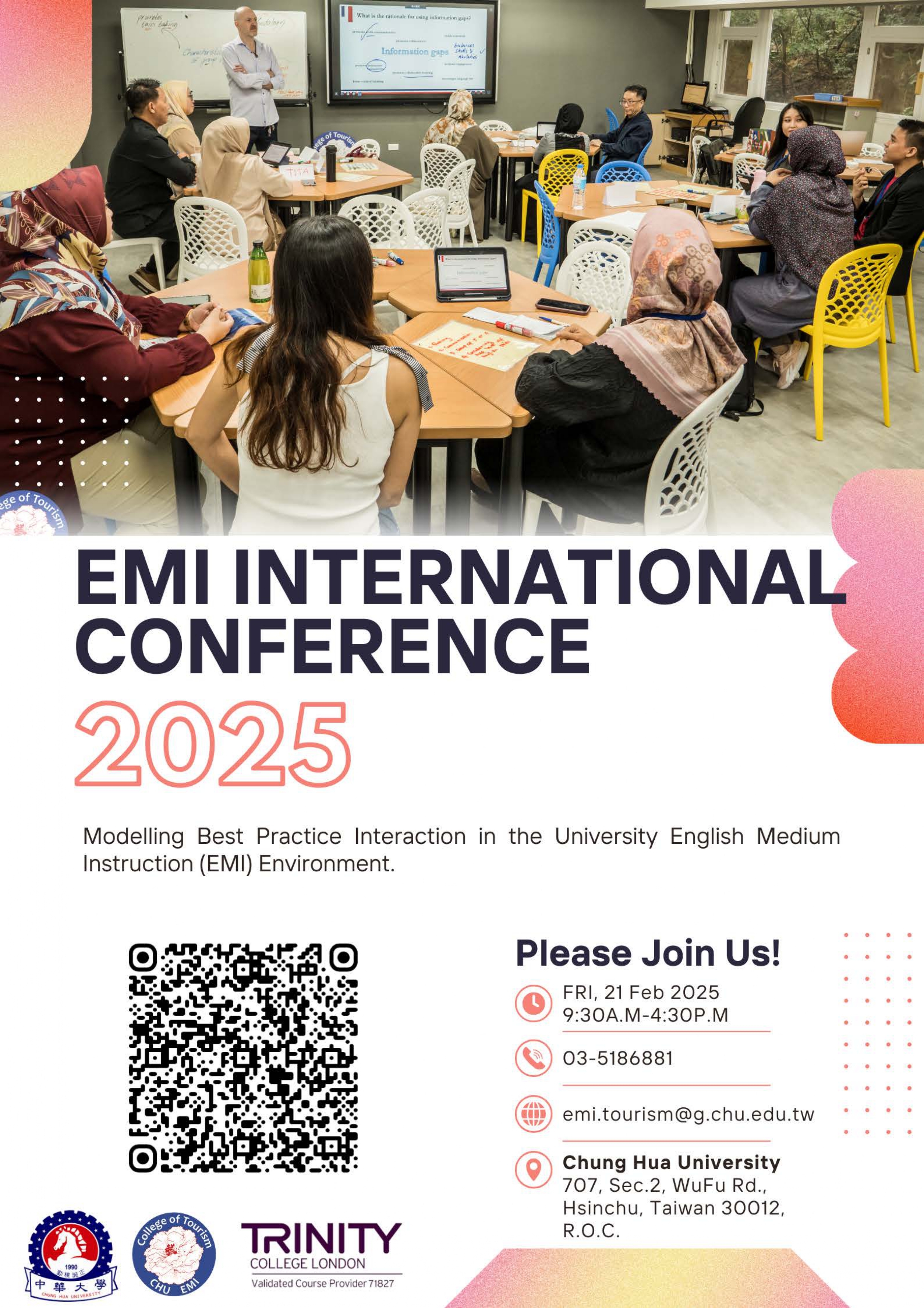 【通識教育中心】轉知:中華大學學校財團法人中華大學觀光學院EMI中心於114年2月21日辦理EMI International Conference
