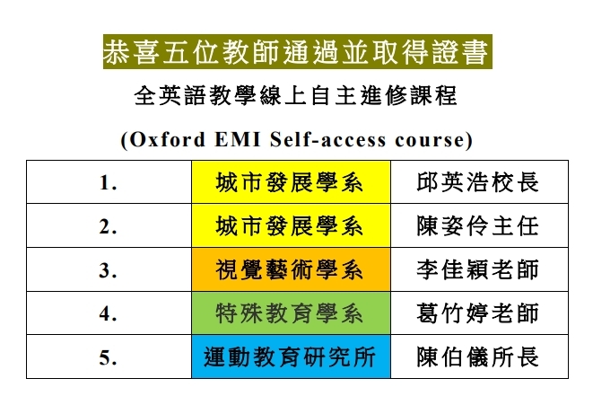 【通識中心公告】【雙語計畫】恭喜師長通過Oxford課程🎉🎉🎉