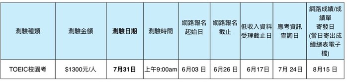 【通識教育中心】【再次公告】本校將於2025/7/31(四) 9:30辦理多益校園考試,歡迎有興趣的同學報名參加。