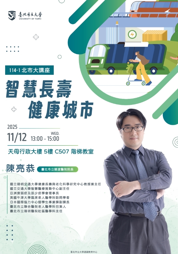 【通識中心公告】【114-1北市大講座】11/12(三)智慧長壽健康城市,本日講座如期舉辦