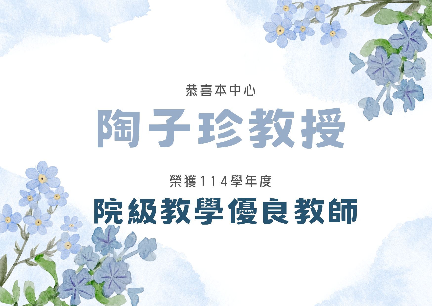 恭賀!通識教育中心陶子珍老師榮獲 114 學年度院級教學優良教師